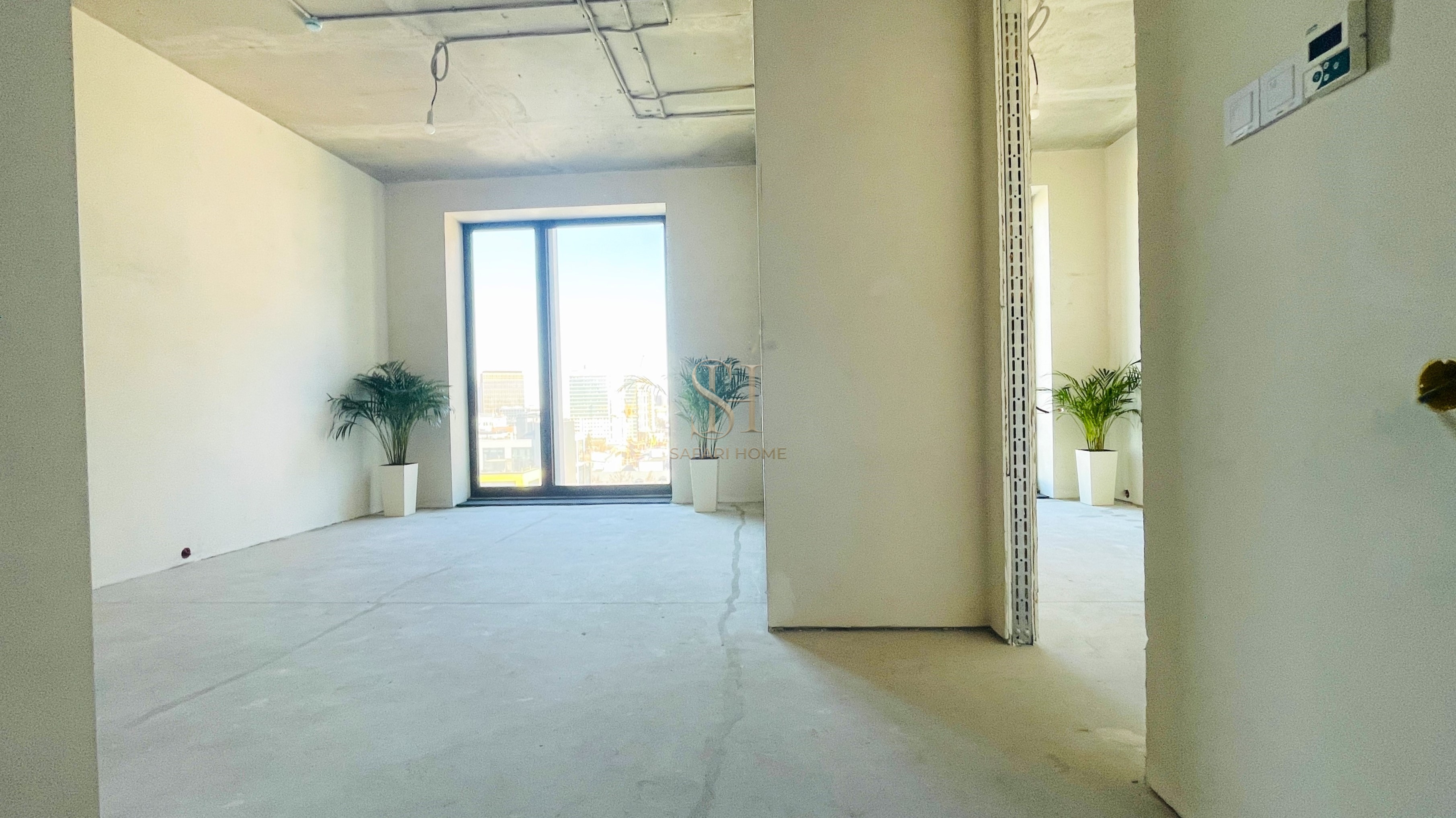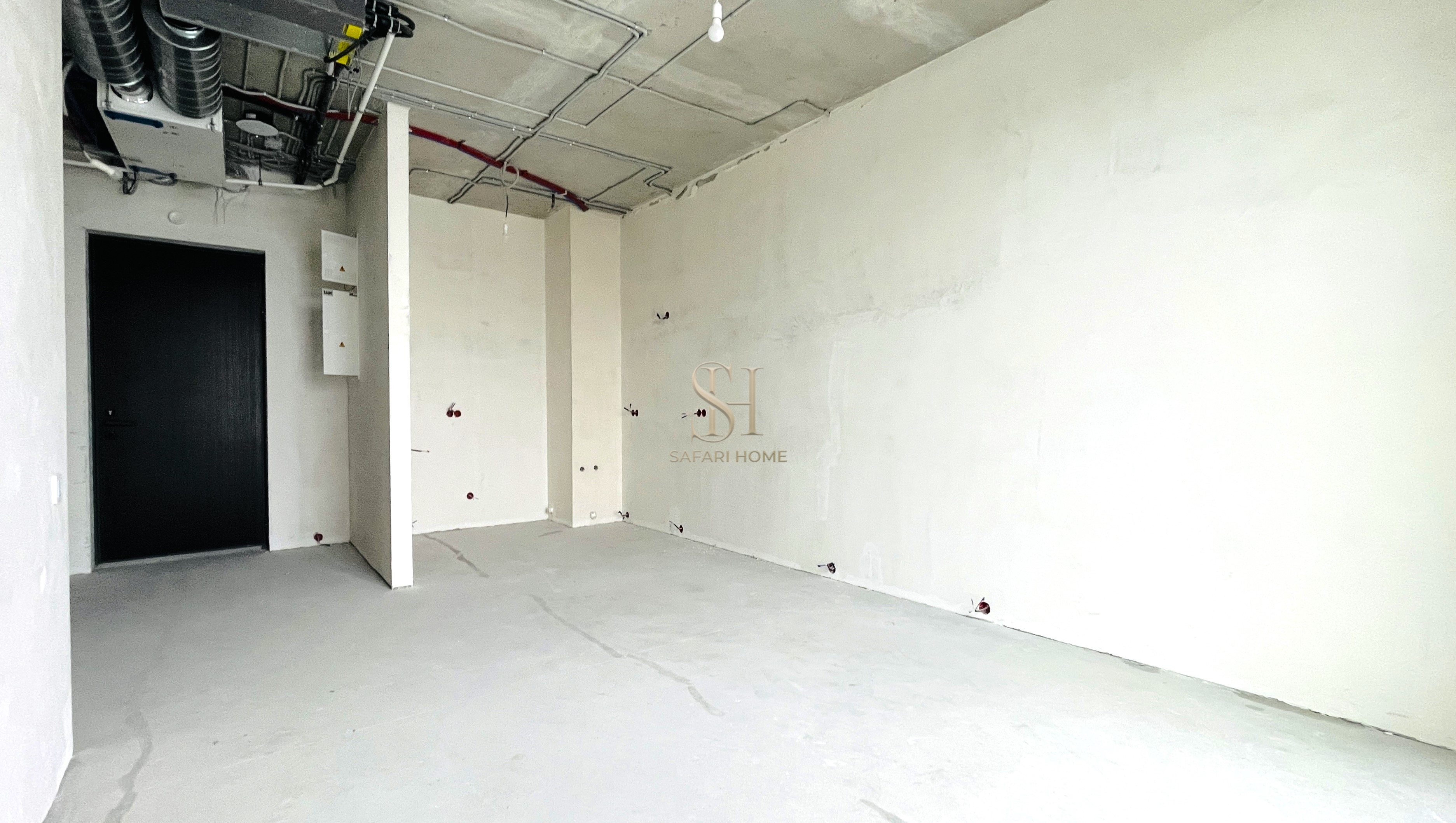 - Уже выполнены: разводка электричества, стяжка пола, перегородки, выравнивание стен под покраску, установка приточно-вытяжной вентиляции с климат-контролем.