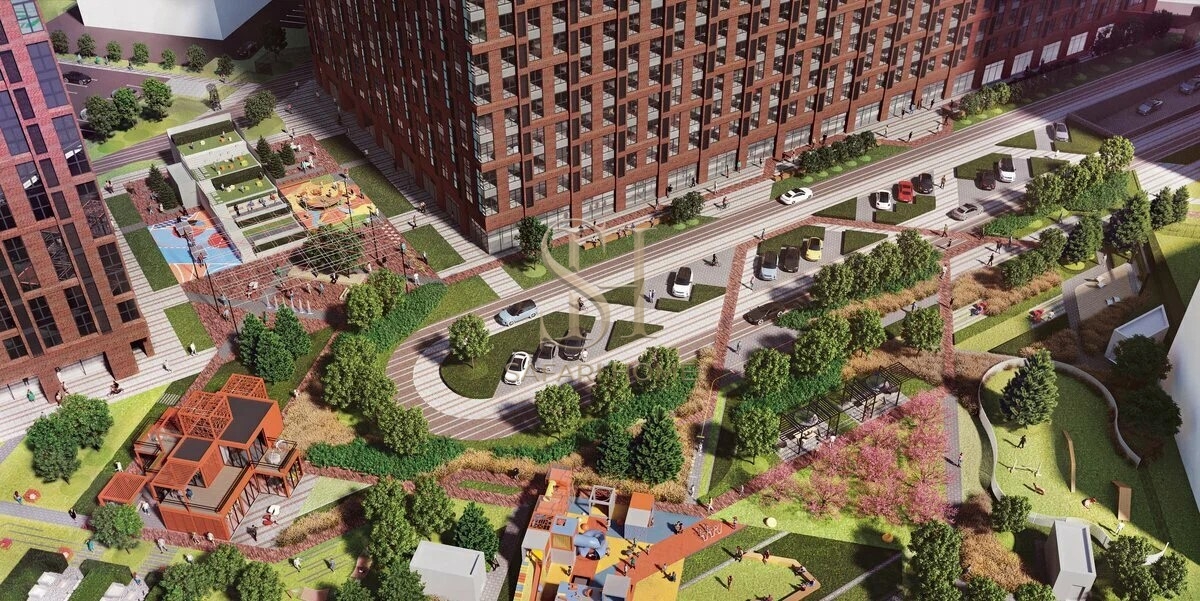 ⁃ Во дворе комплекса спрятались липовые аллеи, цветники, уютные зоны для BBQ, где вы сможете с друзьями насладиться приготовлением блюд на открытом огне, детские игровые комплексы и спортивные площадки.